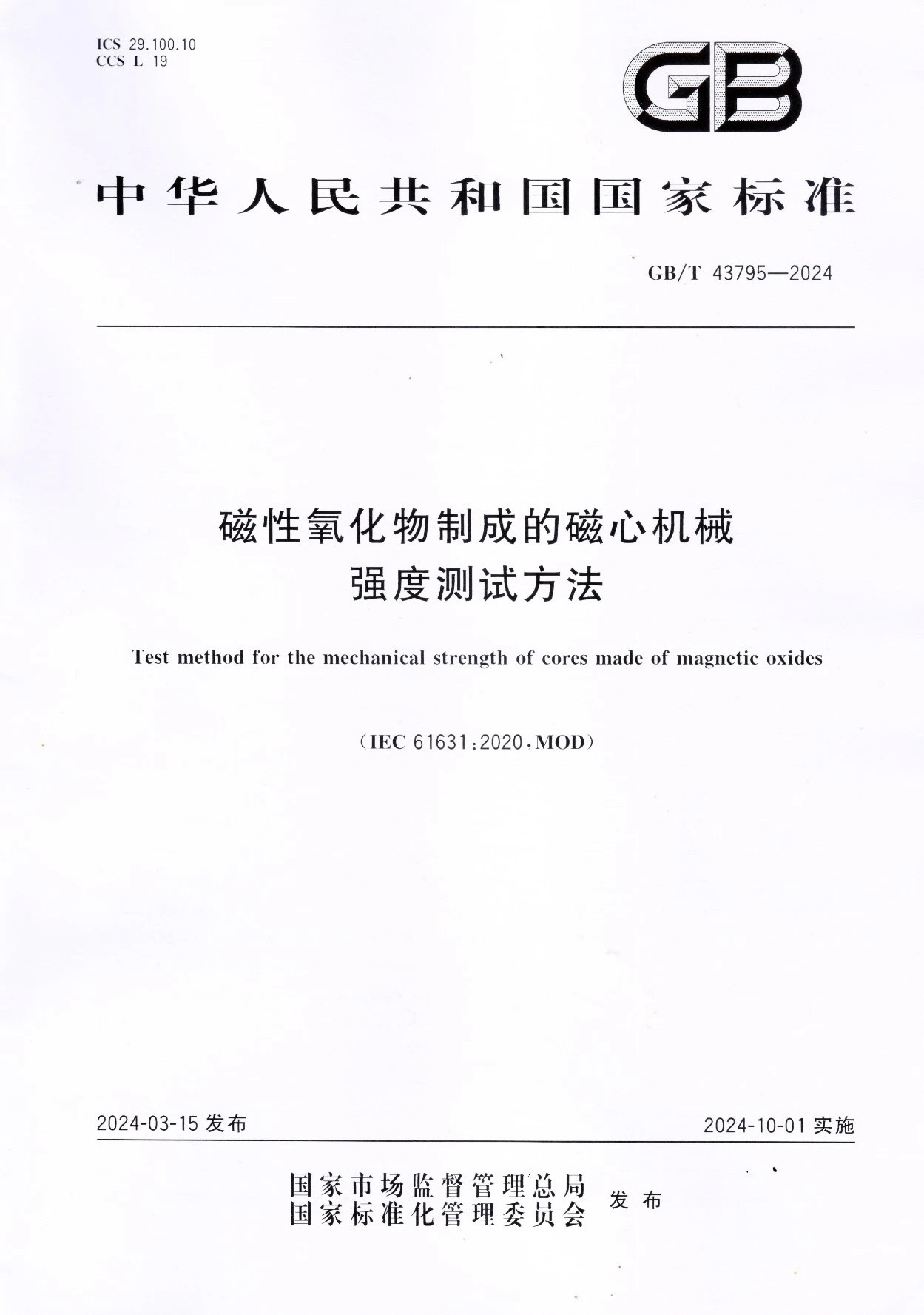 GB/T 43795-2024的正式宣布 ,将有用资助海内企业完善检测要领 ,提高产品质量 ,规范生产和生意行为 ,推进与国际标准同步 ,为铁氧体磁心和金属磁粉心工业的科研、生产、应用和商业起到起劲的推行动用 。