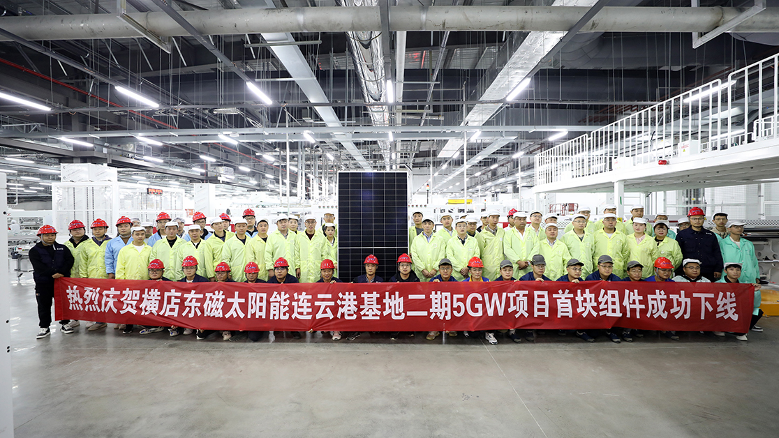 历时6个月主要建设 ,连云港6731顶级游戏新能源科技有限公司二期5GW太阳能高效组件项目首块组件于克日正式下线。